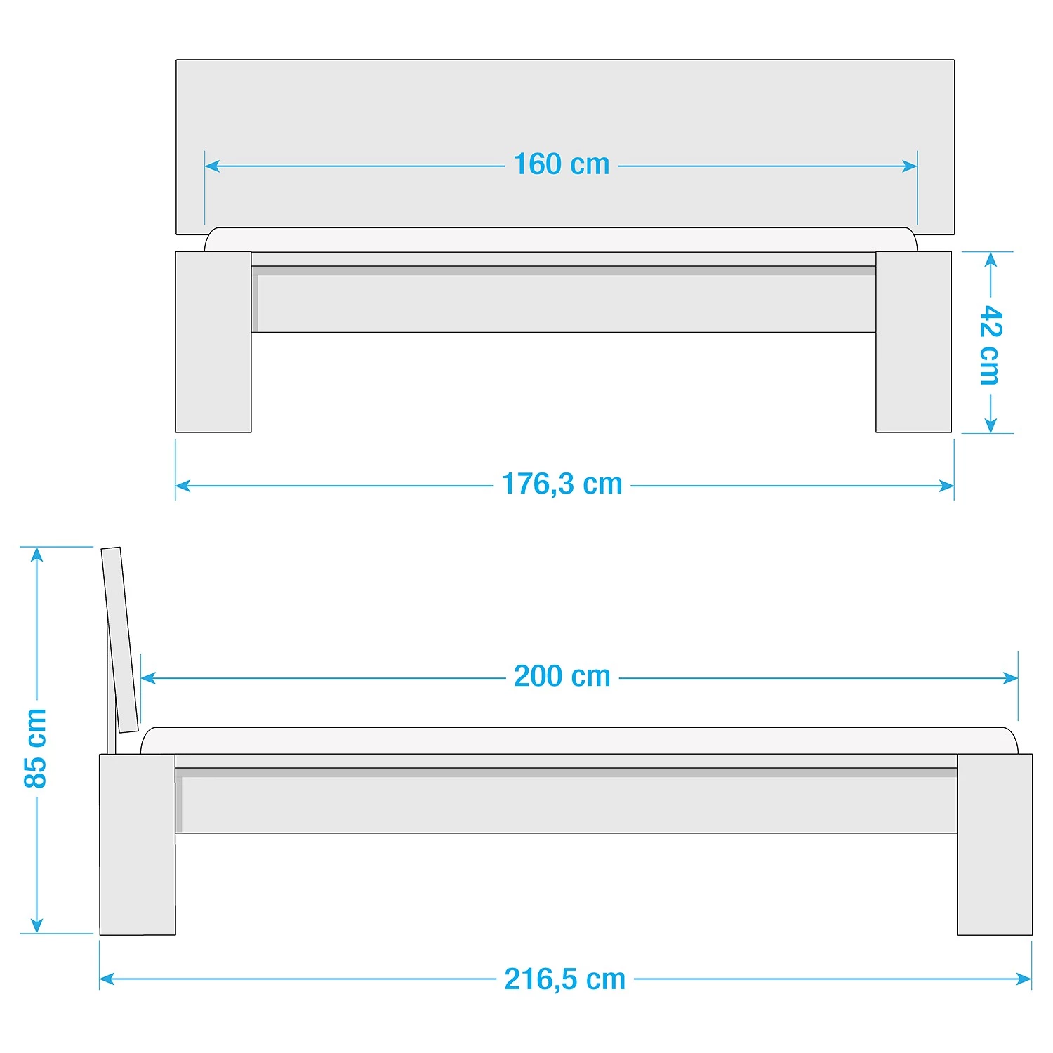- Hauteur du bord inférieur du cadre de lit : 22 cm