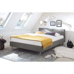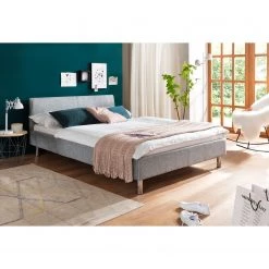 Meise.möbel Lit capitonné Atesio II – Avec tête de lit à effet coussin et tiroir de lit – Gris clair