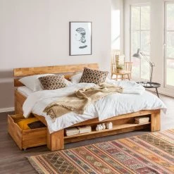 Ars Natura Lit en bois massif Castlecoote – Chêne massif – avec tiroirs de lit – 140 x 200cm
