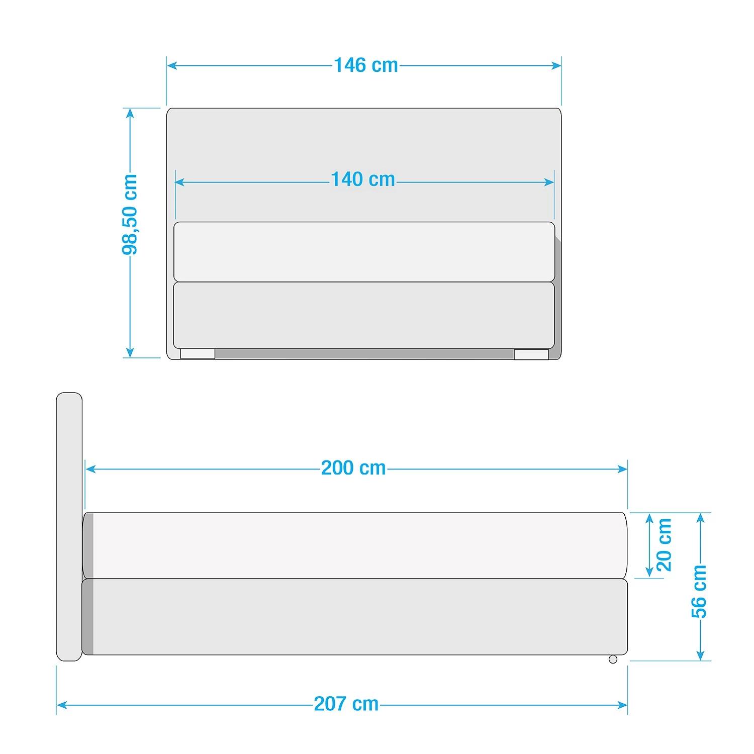 - Hauteur du bord de lit : 56 cm