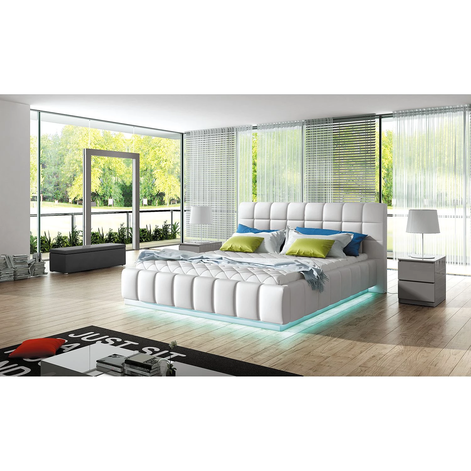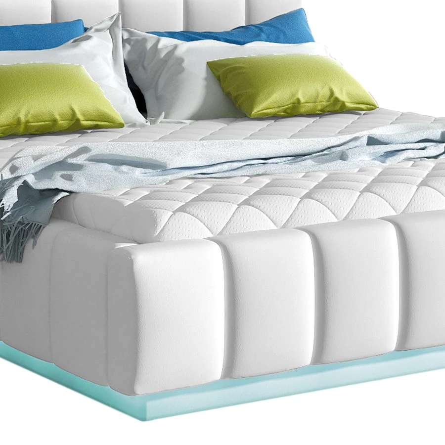 - Contenu de la livraison : lit capitonné avec éclairage et sommier à lattes