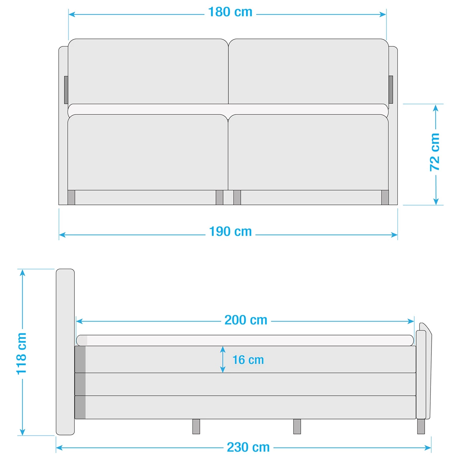 - Hauteur du bord de lit : 72 cm