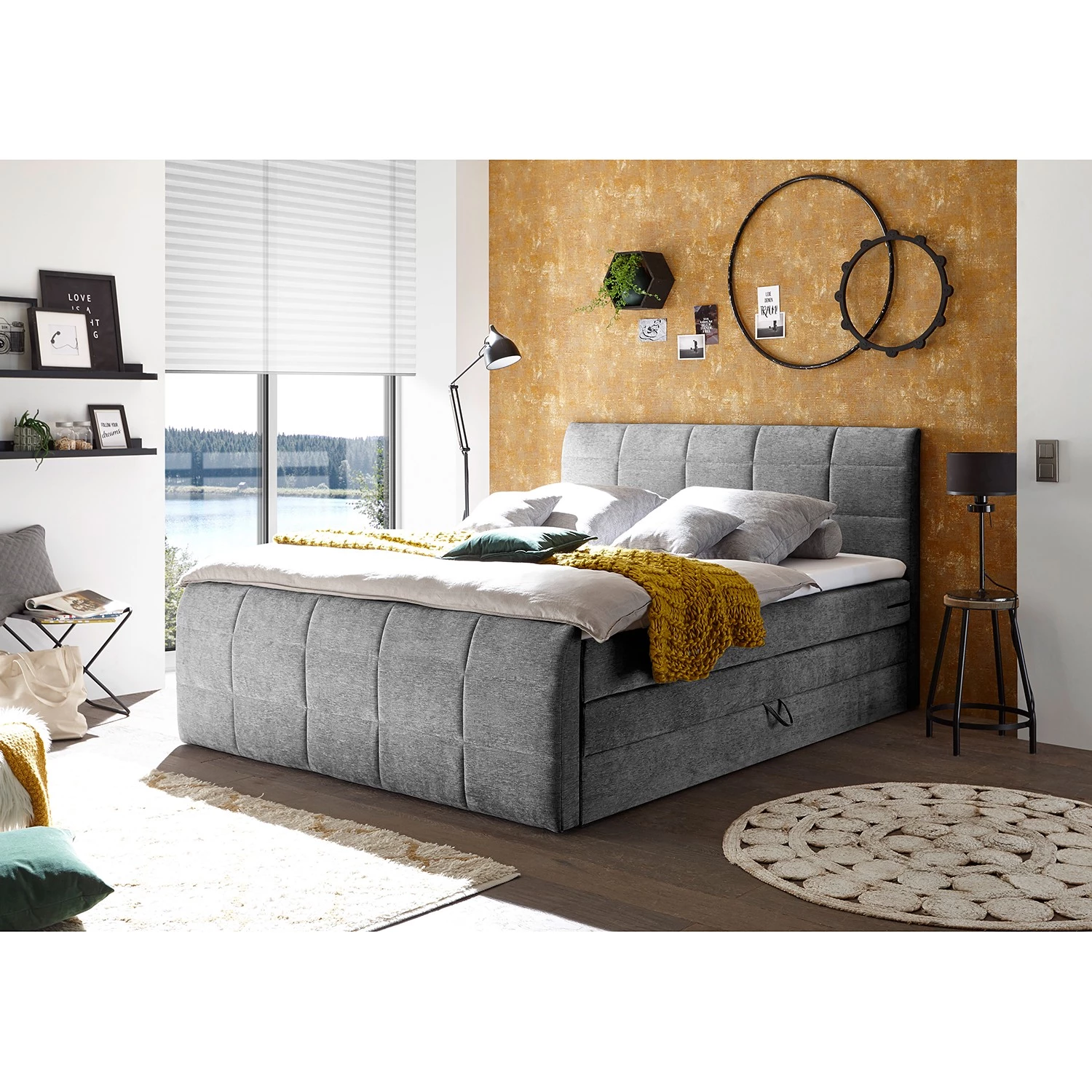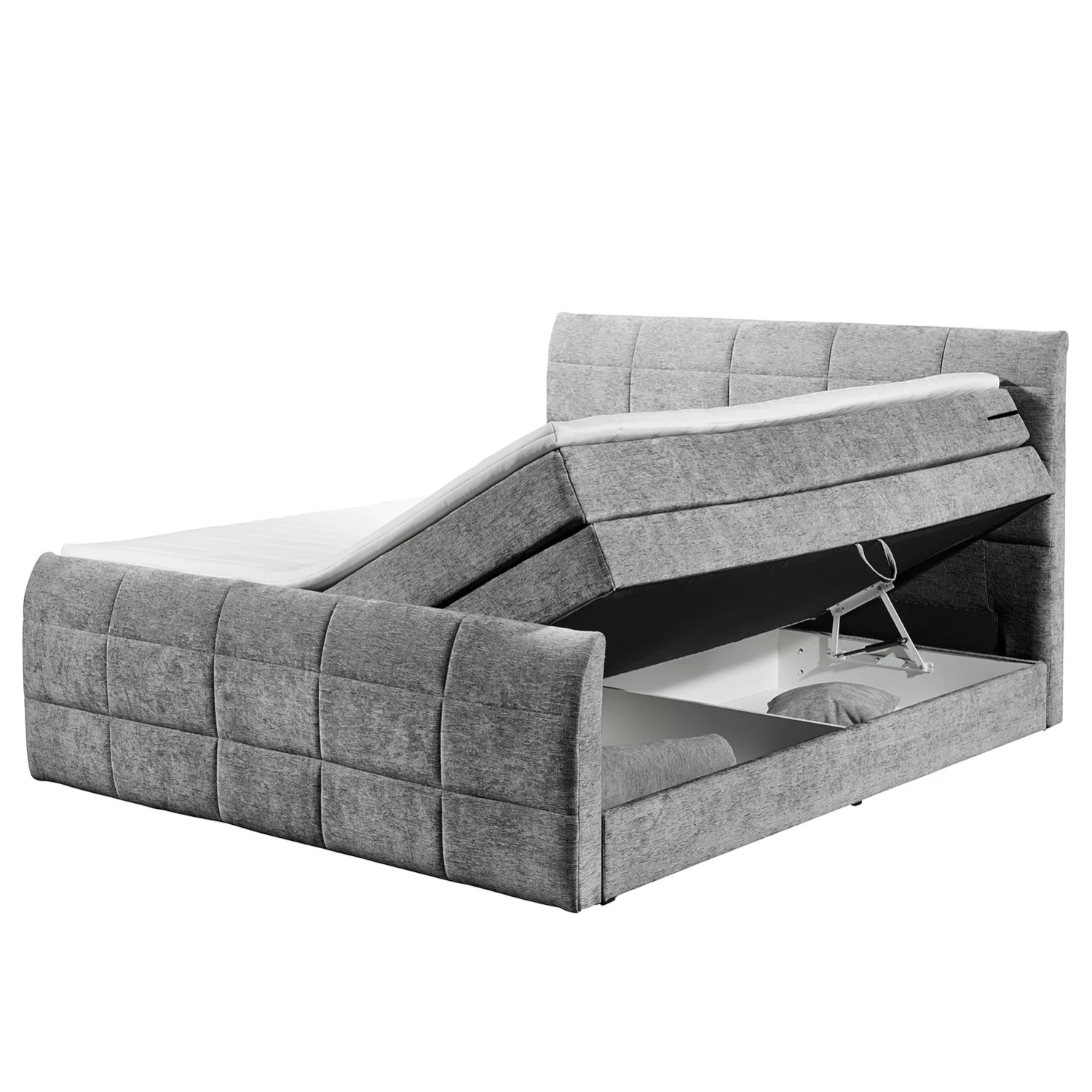 - Contenu de la livraison : Surmatelas, tête de lit, matelas, sommier tapissier avec coffre de lit, pied de lit, instructions et matériel de montage