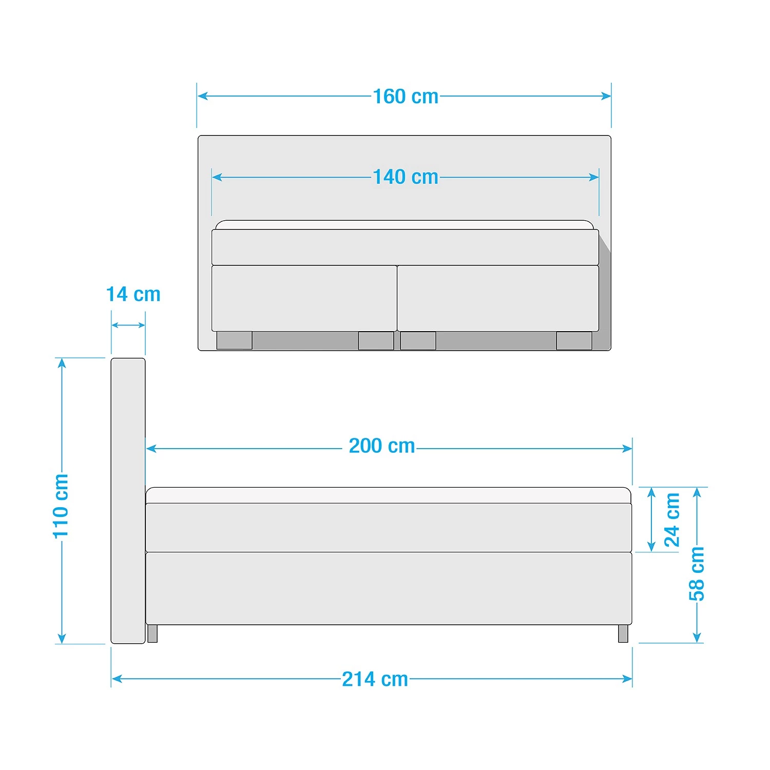 - Contenu de la livraison : Lit boxspring avec matelas en mousse confort et surmatelas en mousse confort intégré
