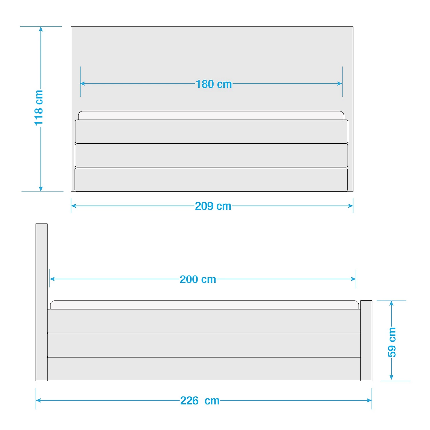 - Contenu de la livraison : 2 matelas, surmatelas, tête de lit, 2 sommiers tapissiers avec coffre de lit, instructions et matériel de montage