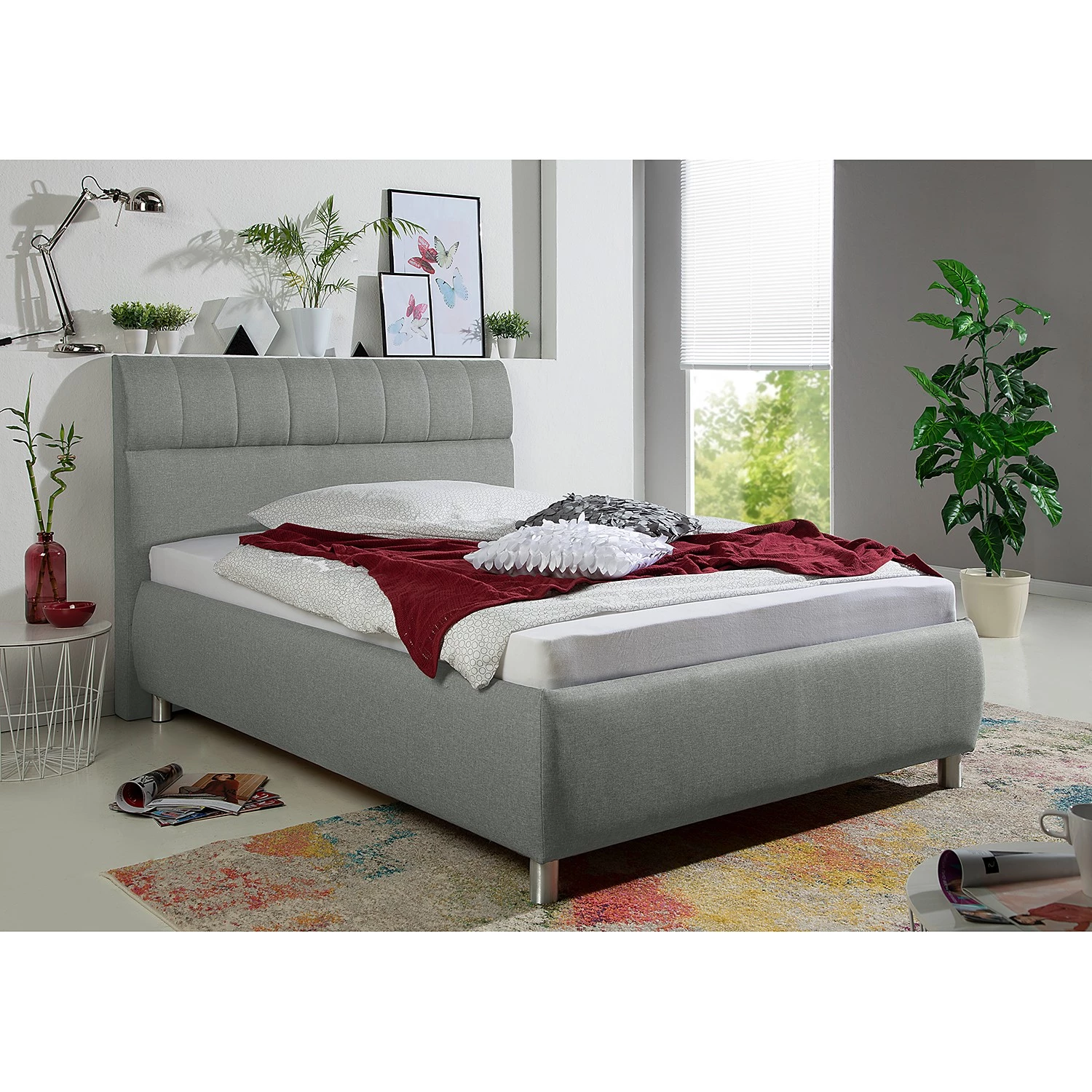 - Structure en panneau aggloméré, 4 pieds en aluminium-métal ronds, environ 9 cm de haut, tissu structuré (100% PES)