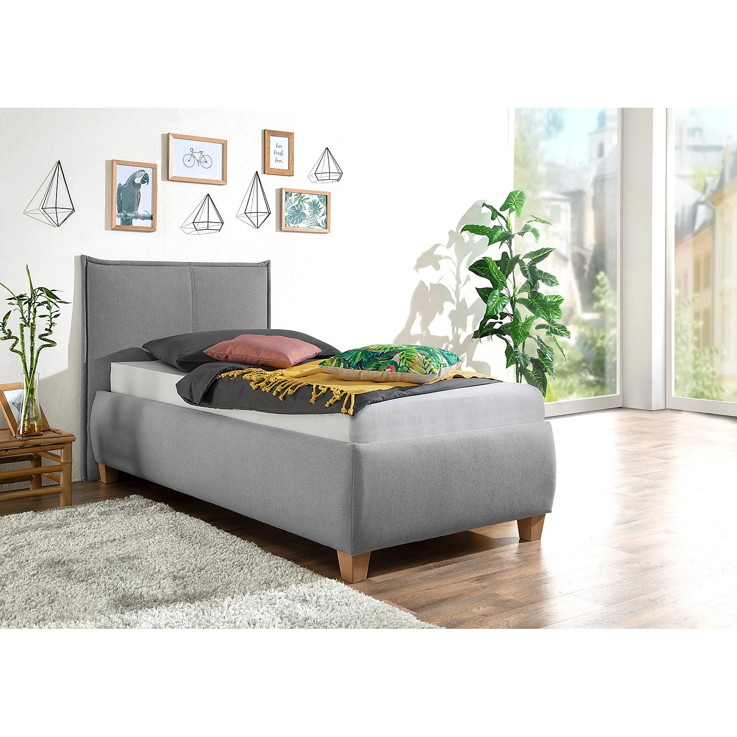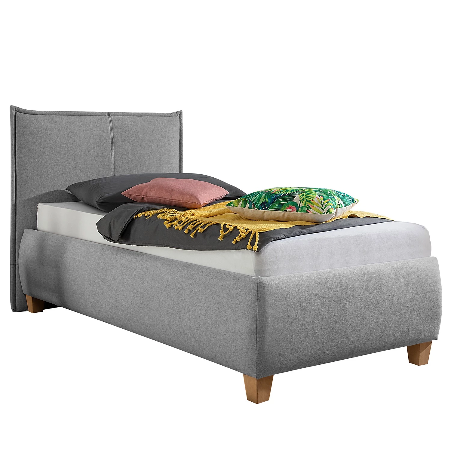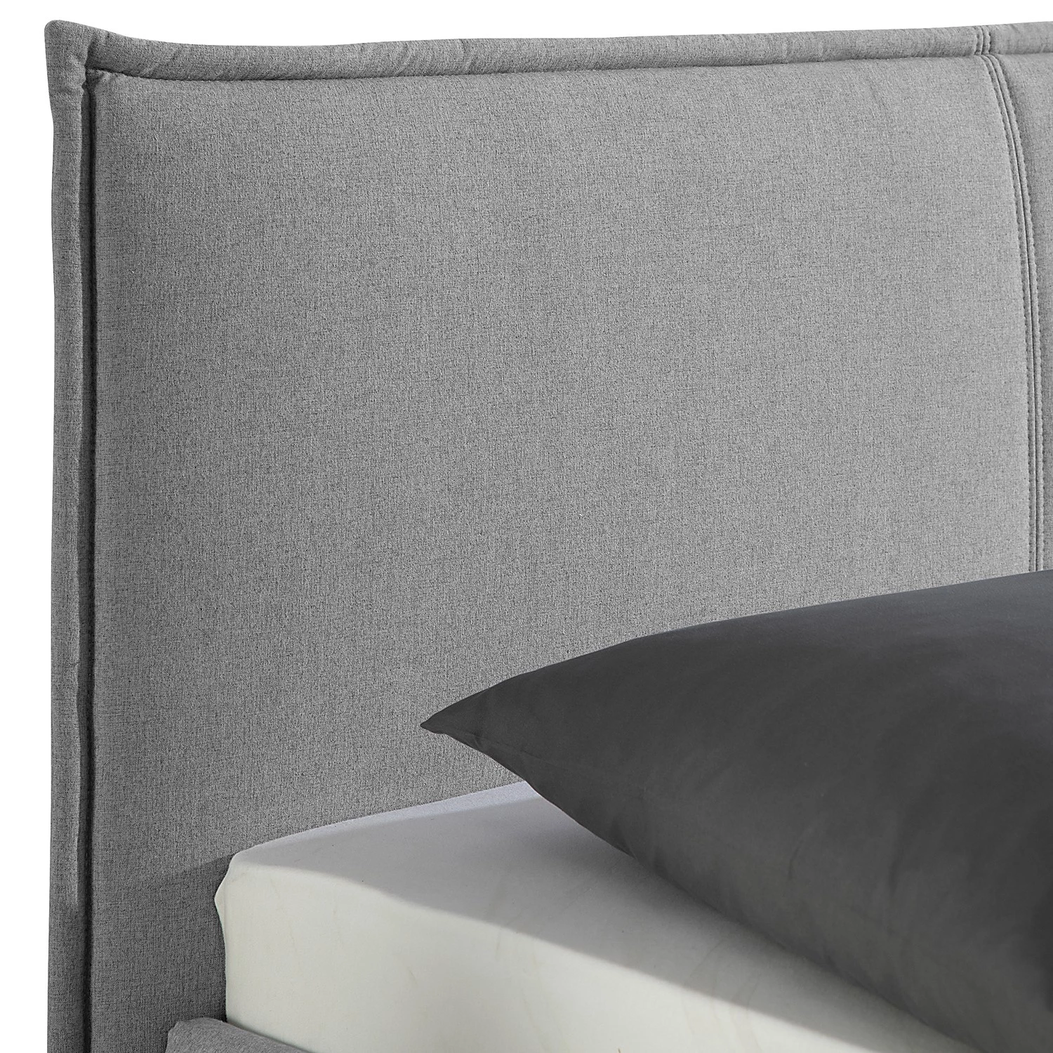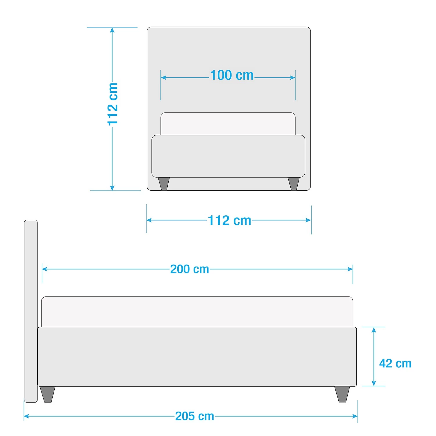 - Autres caractéristiques : Cadre de lit avec tête de lit (avec passepoil tout autour, séparé visuellement au milieu par des coutures). 4 pieds en bois huilé naturel, 9 cm de haut