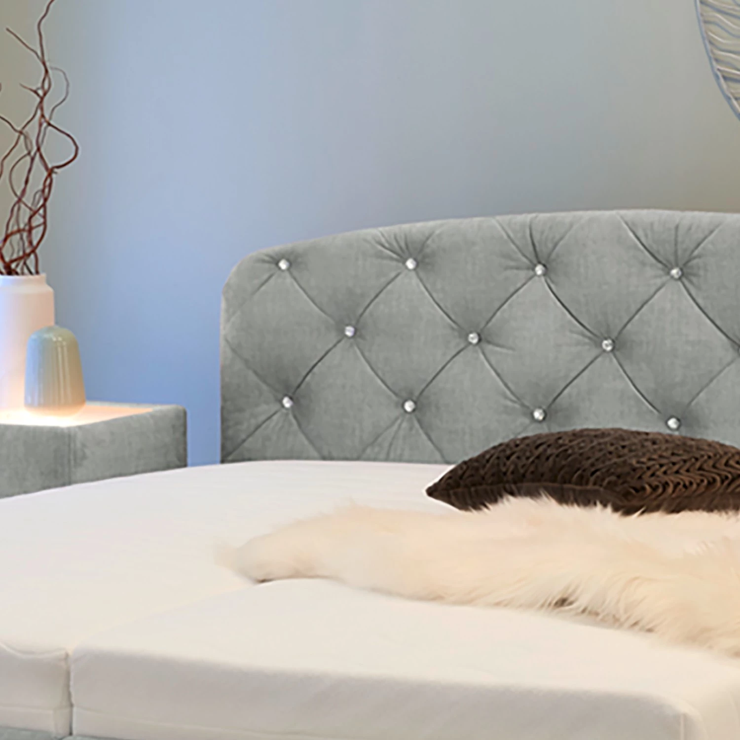 - Contenu de la livraison : Lit capitonné avec tête de lit et matelas, sans accessoires