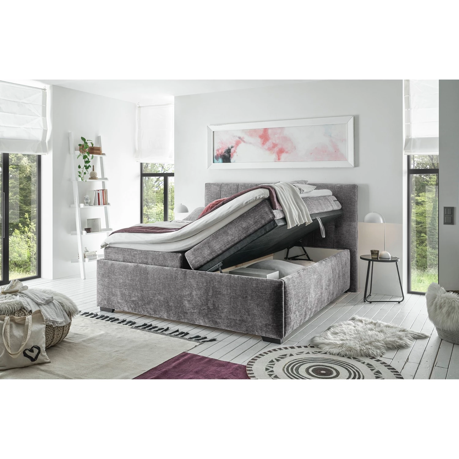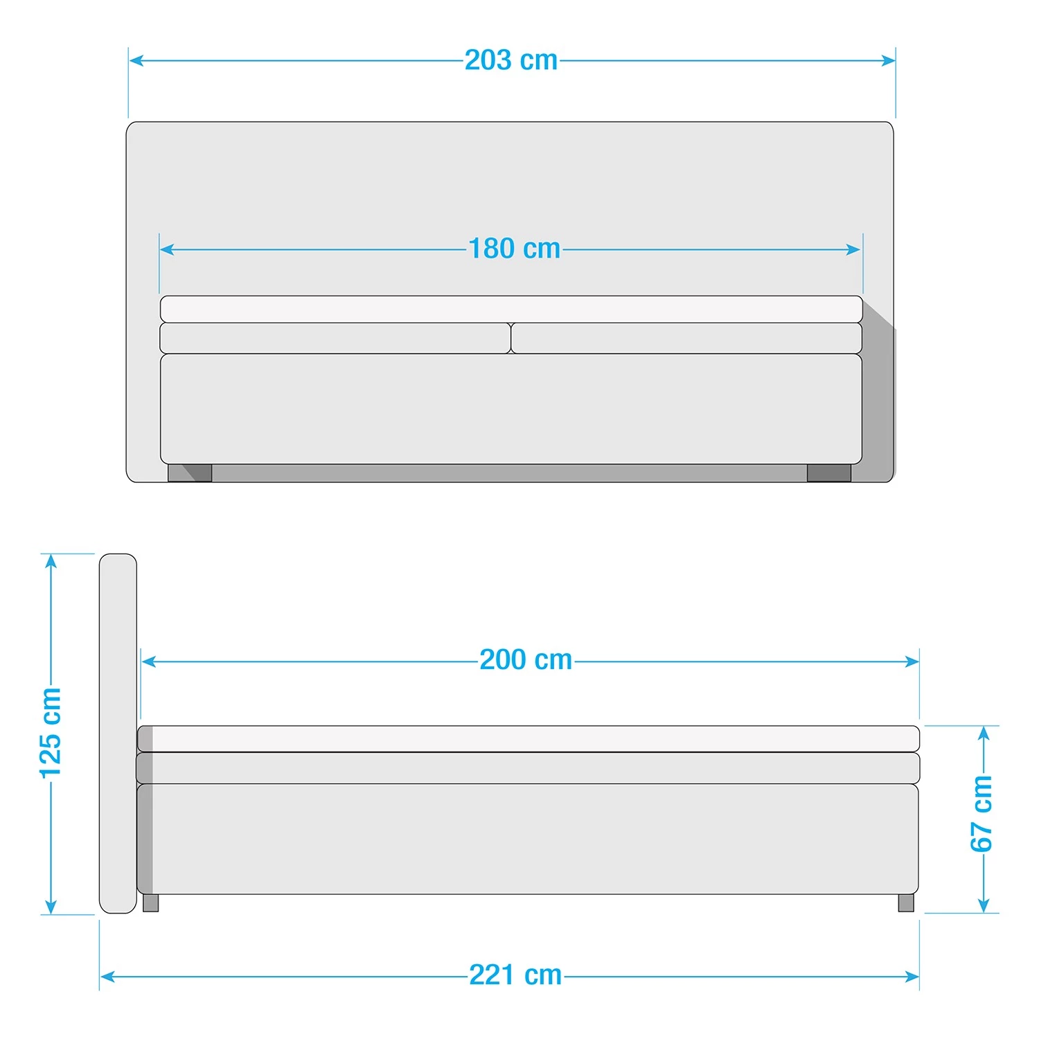 - Contenu de la livraison : Surmatelas, tête de lit, sommier tapissier avec coffre de lit, instructions et matériel de montage