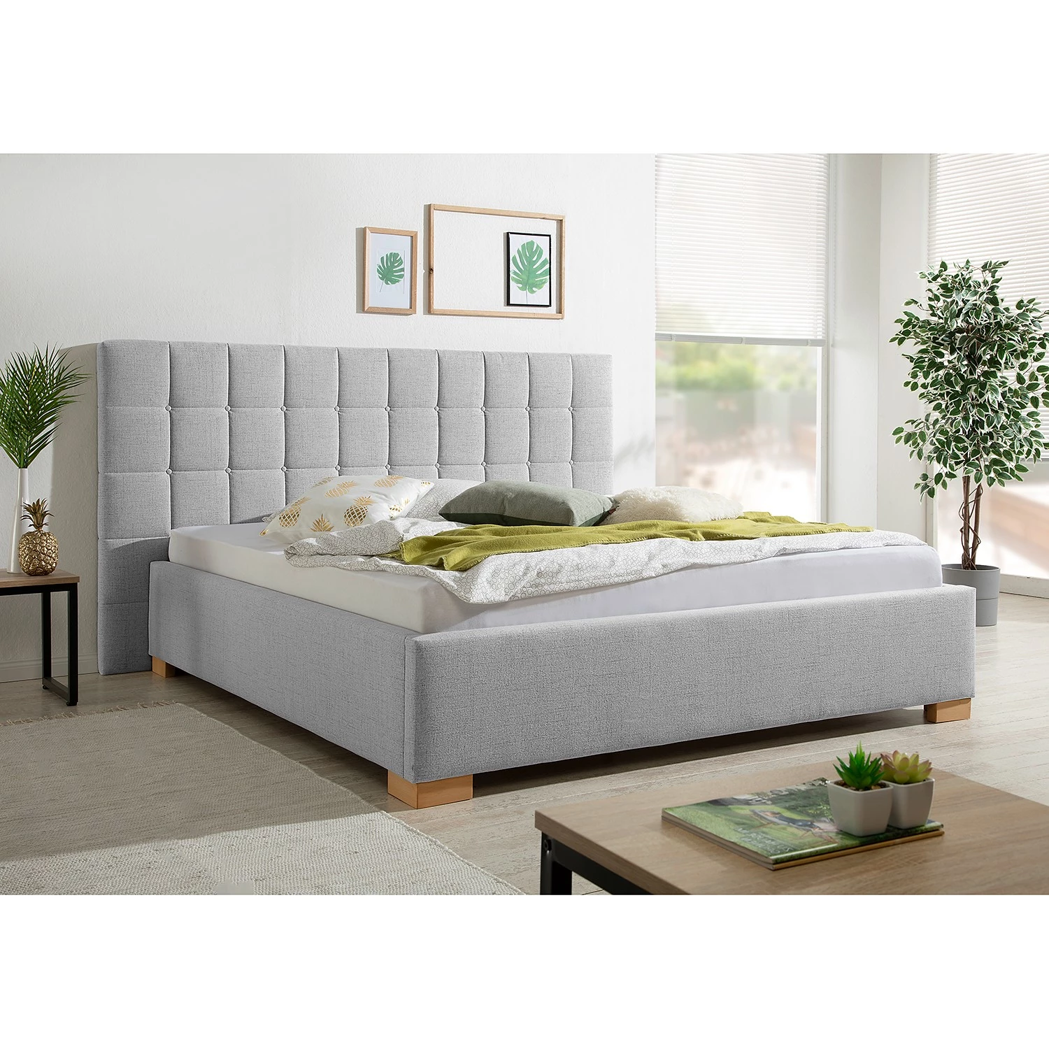 - Autres caractéristiques : Cadre de lit avec tête de lit (rembourrage doux avec piquage à carreaux). 4 niveaux de réglage de la hauteur de couchage grâce à des équerres en métal.