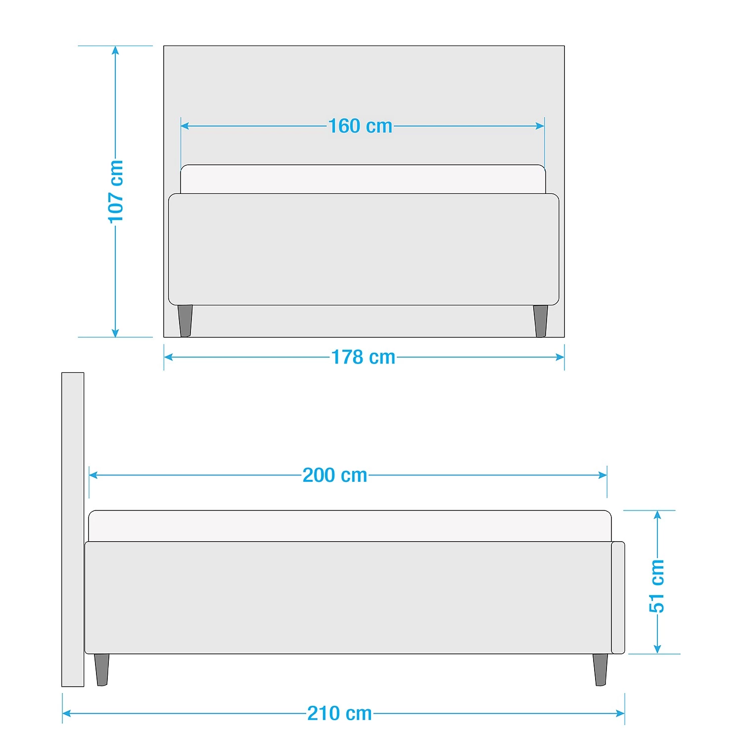 - Surface de couchage : 160 x 200cm