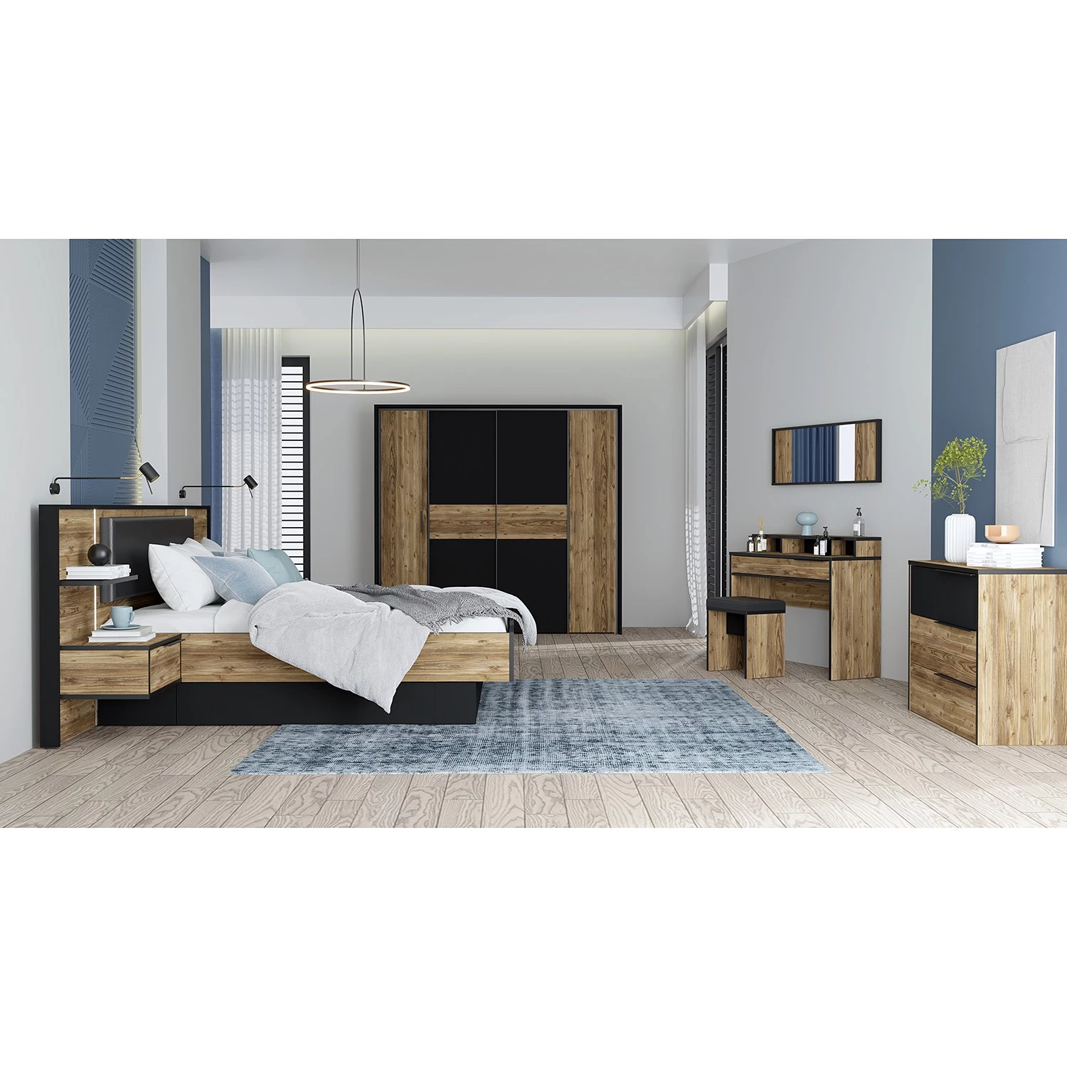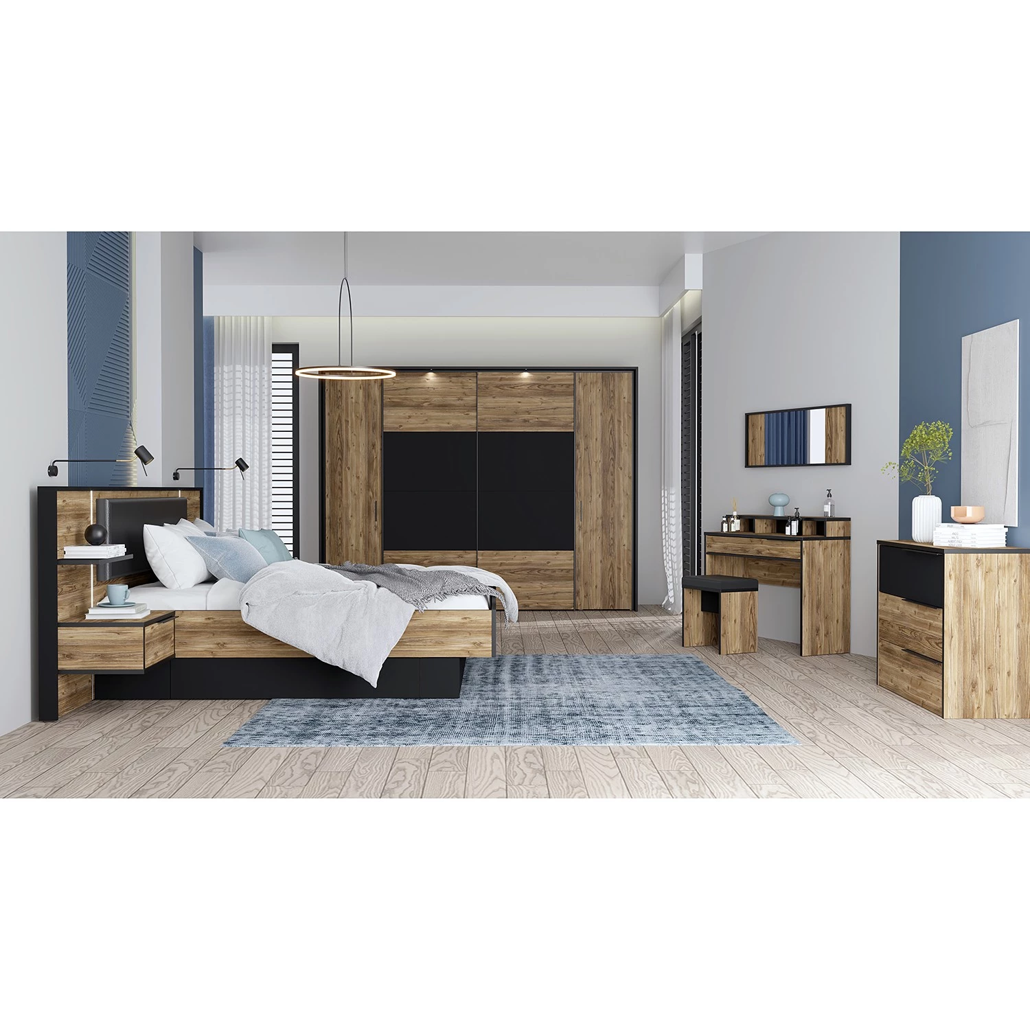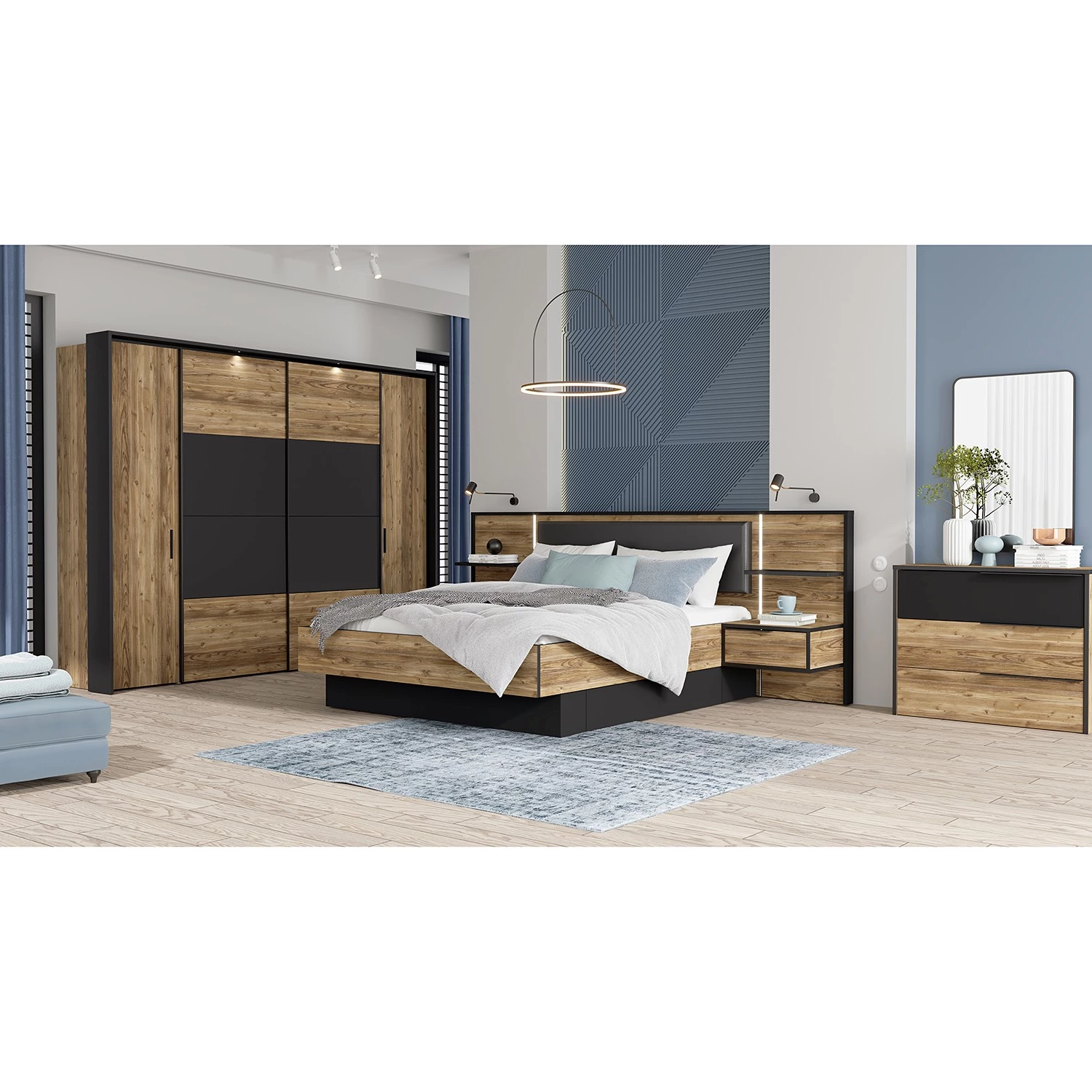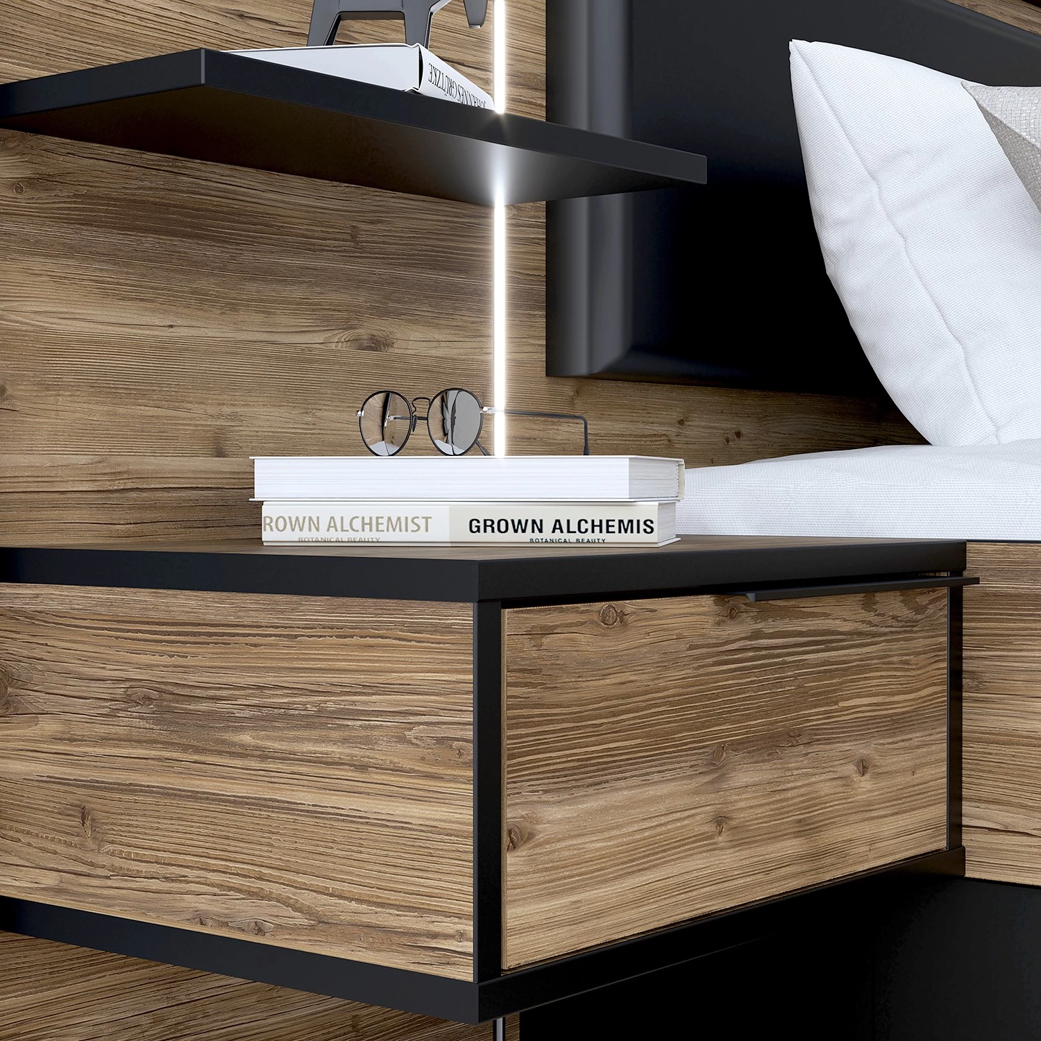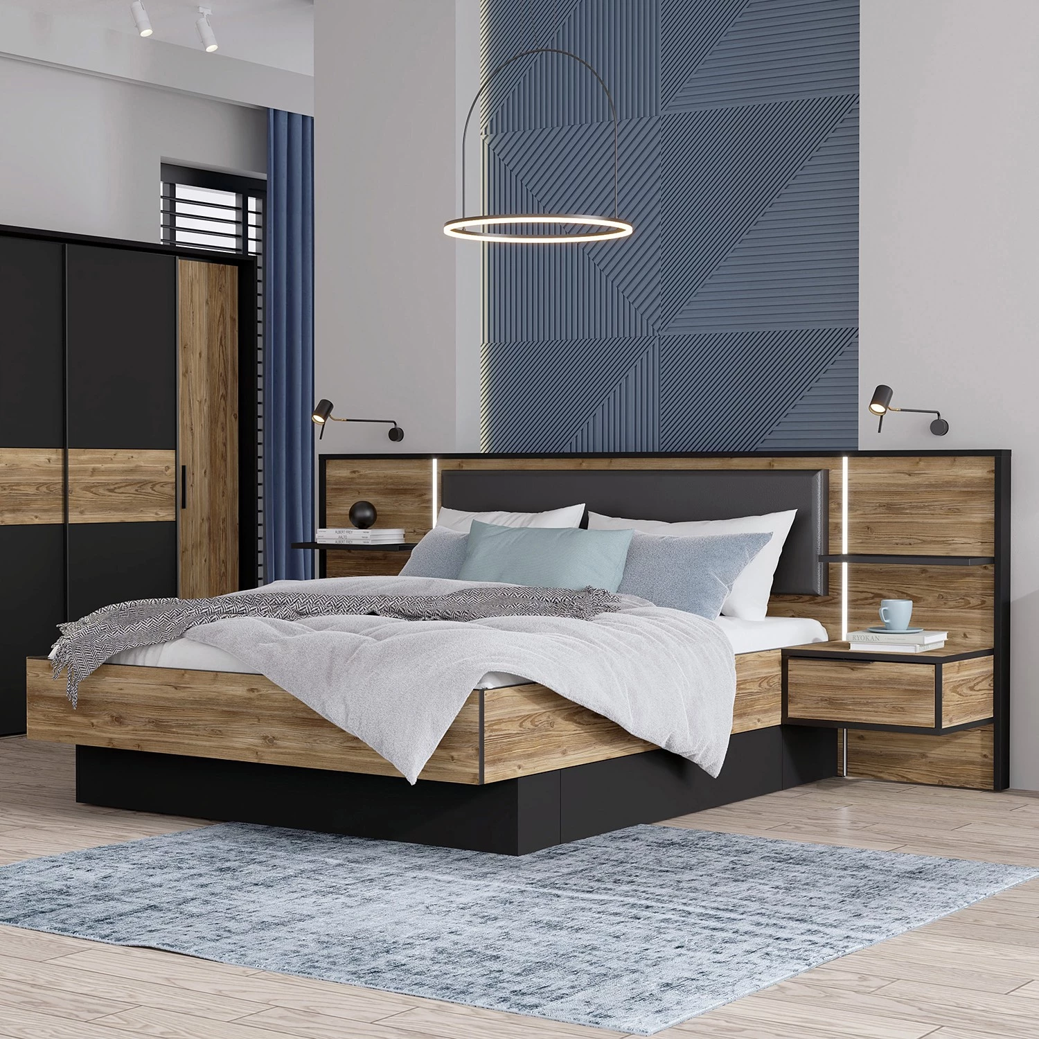 - Contenu de la livraison : Lit avec éclairage et 2 tables de chevet intégrés, sans sommier, matelas ni accessoires