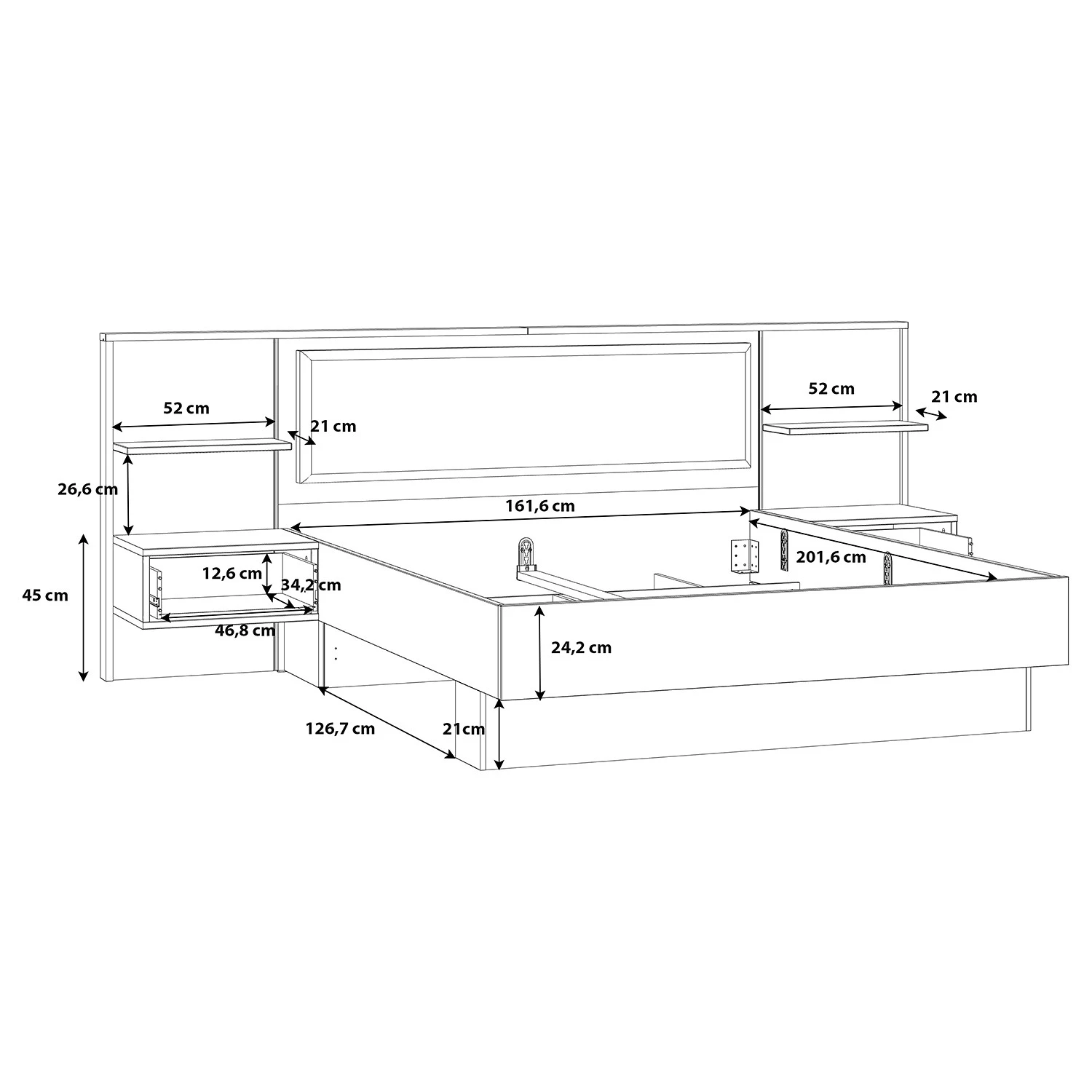 - Hauteur du bord de lit : 45 cm