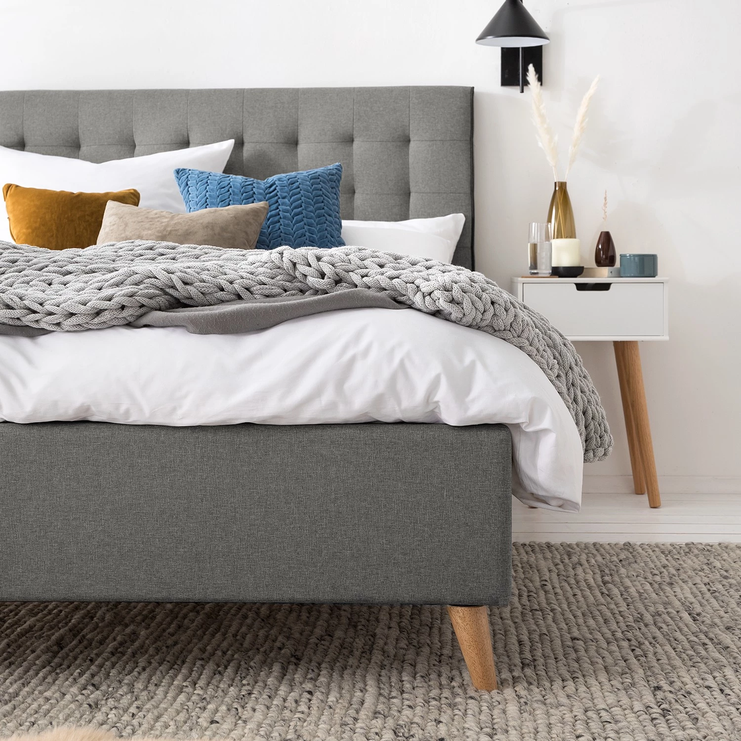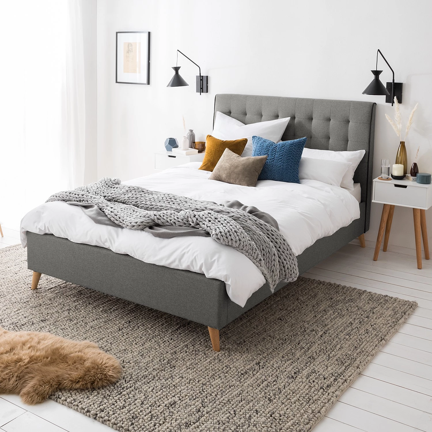 - Contenu de la livraison : Lit capitonné sans sommier à lattes, matelas ni accessoires