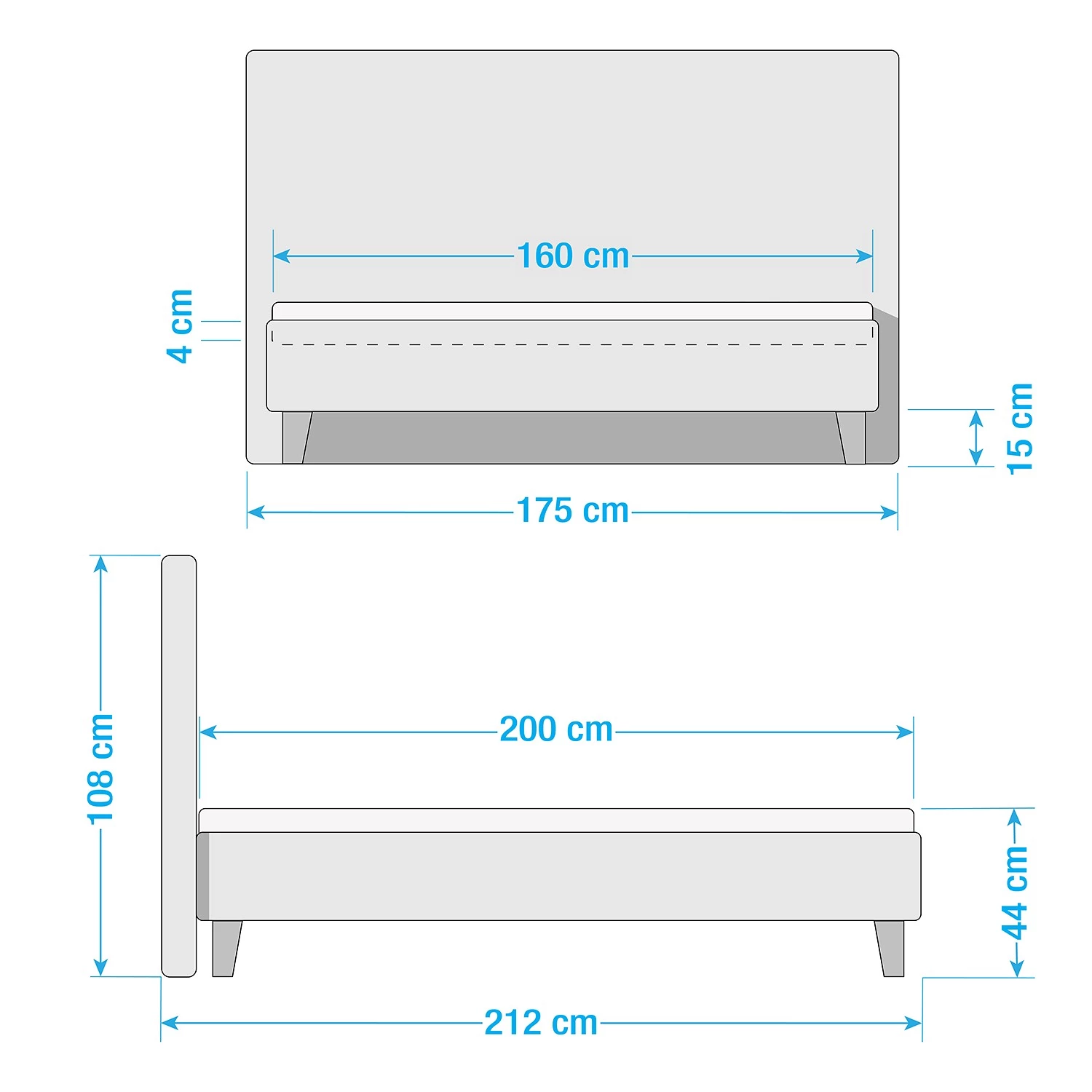 - Hauteur du bord de lit : 44 cm