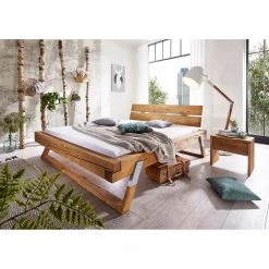 Loftscape Lit et chevets Huy – Éclairage intĂ©grĂ© – Imitation pin des Alpes / Noir – 180 x 200cm