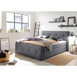 Fredriks Lit boxspring Joiselle – Surmatelas inclus – Tissu – Anthracite – 180 x 200cm