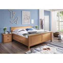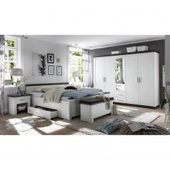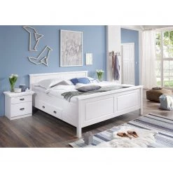 Maison Belfort Lit en bois massif Bergen – EpicĂ©a blanc / EpicĂ©a lessivĂ© – 140 x 200cm