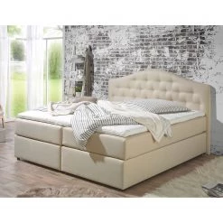 Maison Belfort Lit Boxspring Jean – Crème – 140 x 200cm – Matelas Ă ressorts Bonnell – D2 souple