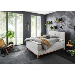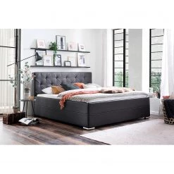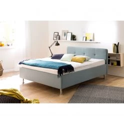 Meise.möbel Lit capitonné Atesio II – Avec tête de lit à effet coussin et tiroir de lit – Gris clair