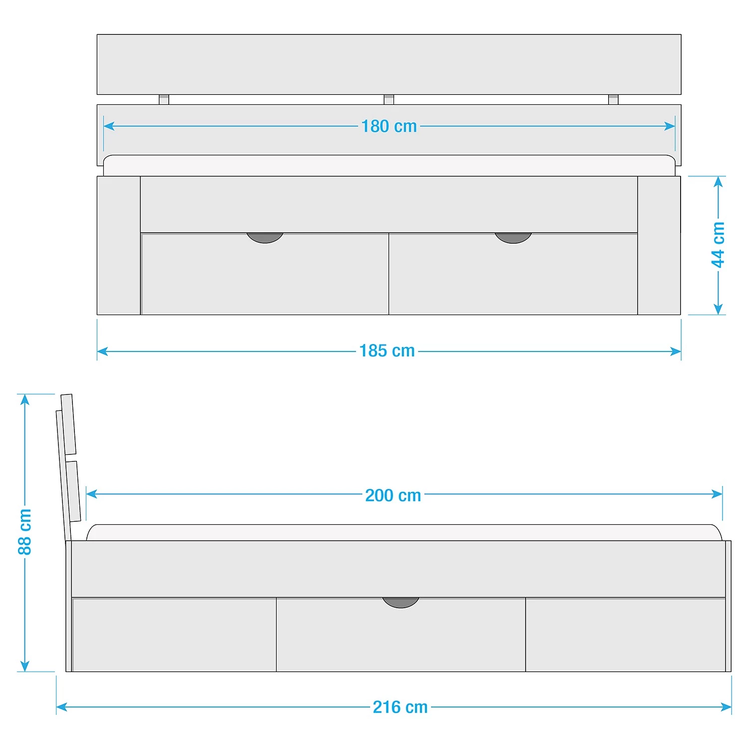 - Contenu de la livraison : Lit 180 x 200 cm, avec tête de lit et 2 x 2 tiroirs