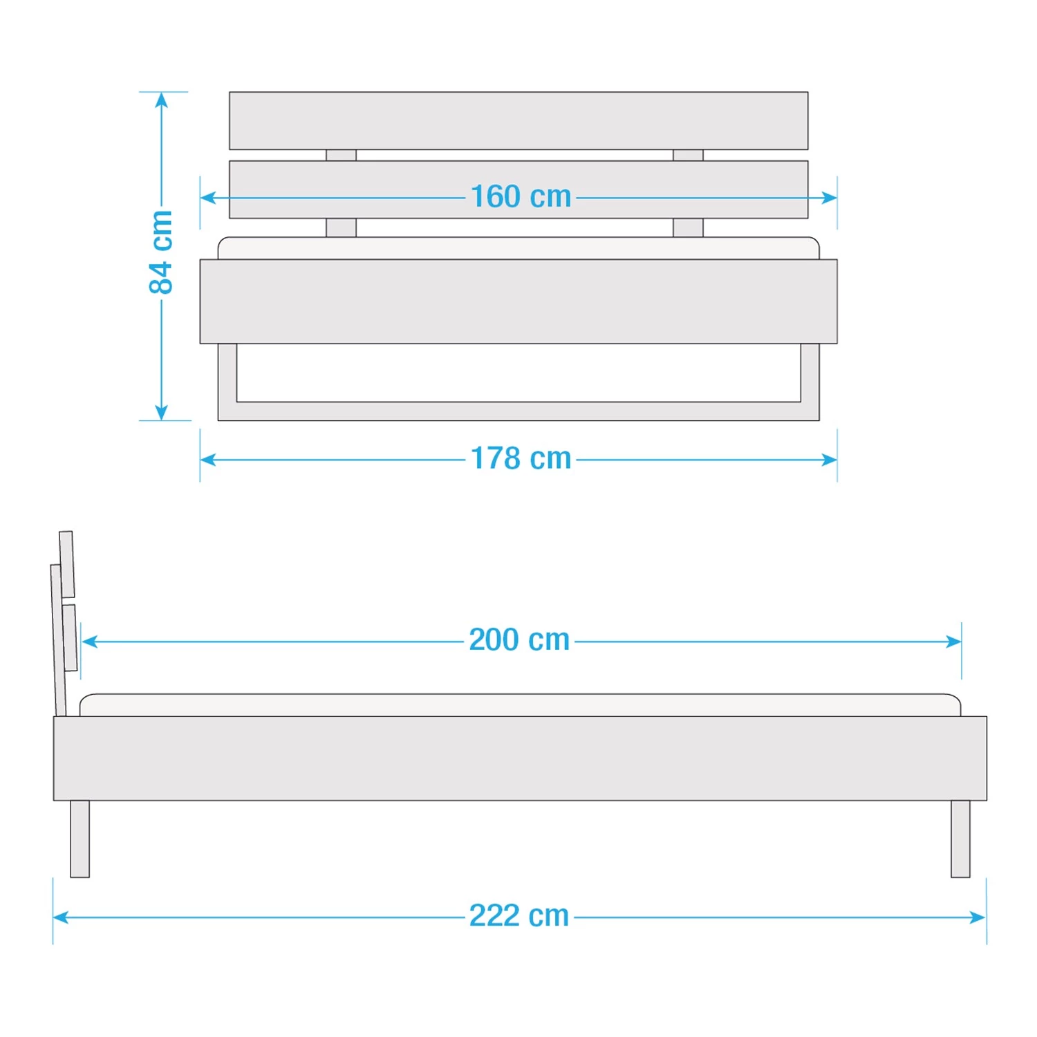 - Surface de couchage : 160 x 200cm