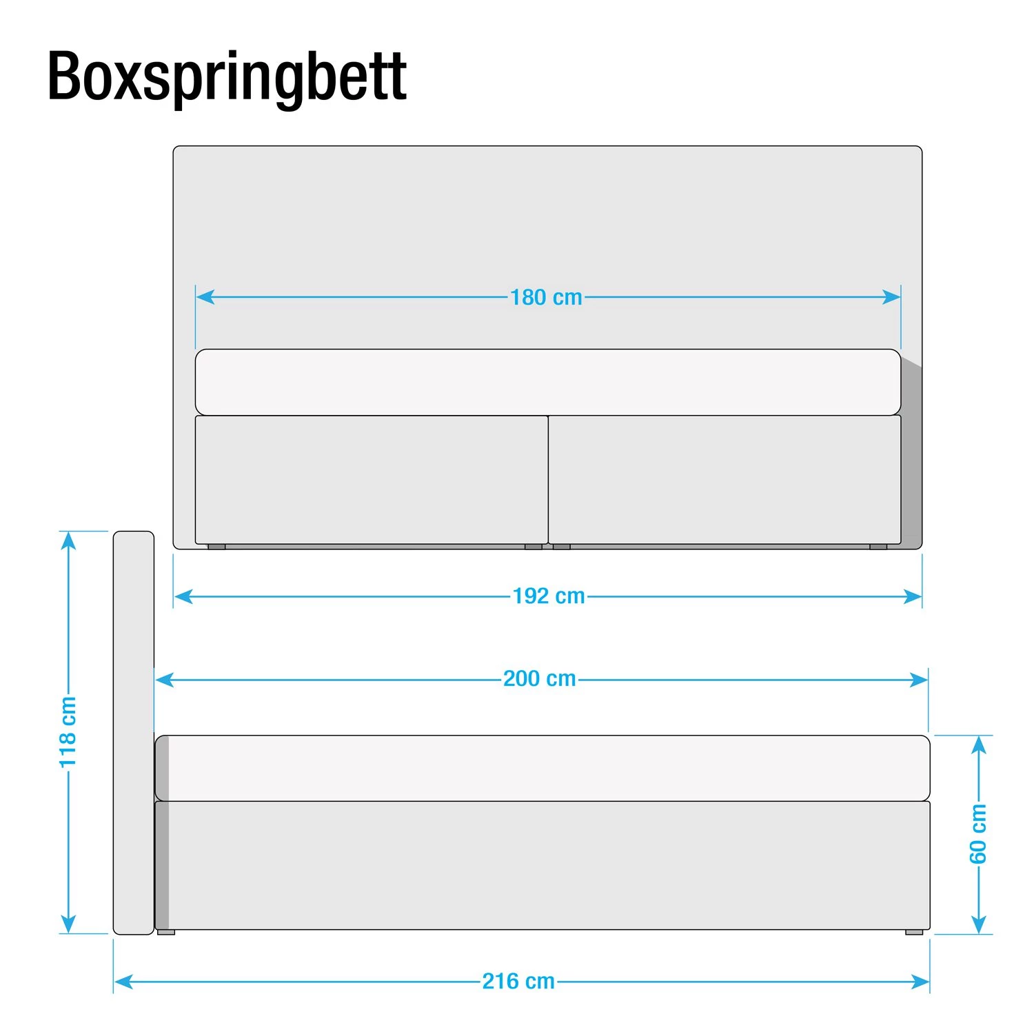 - Contenu de la livraison : lit boxspring, sans surmatelas ni décoration