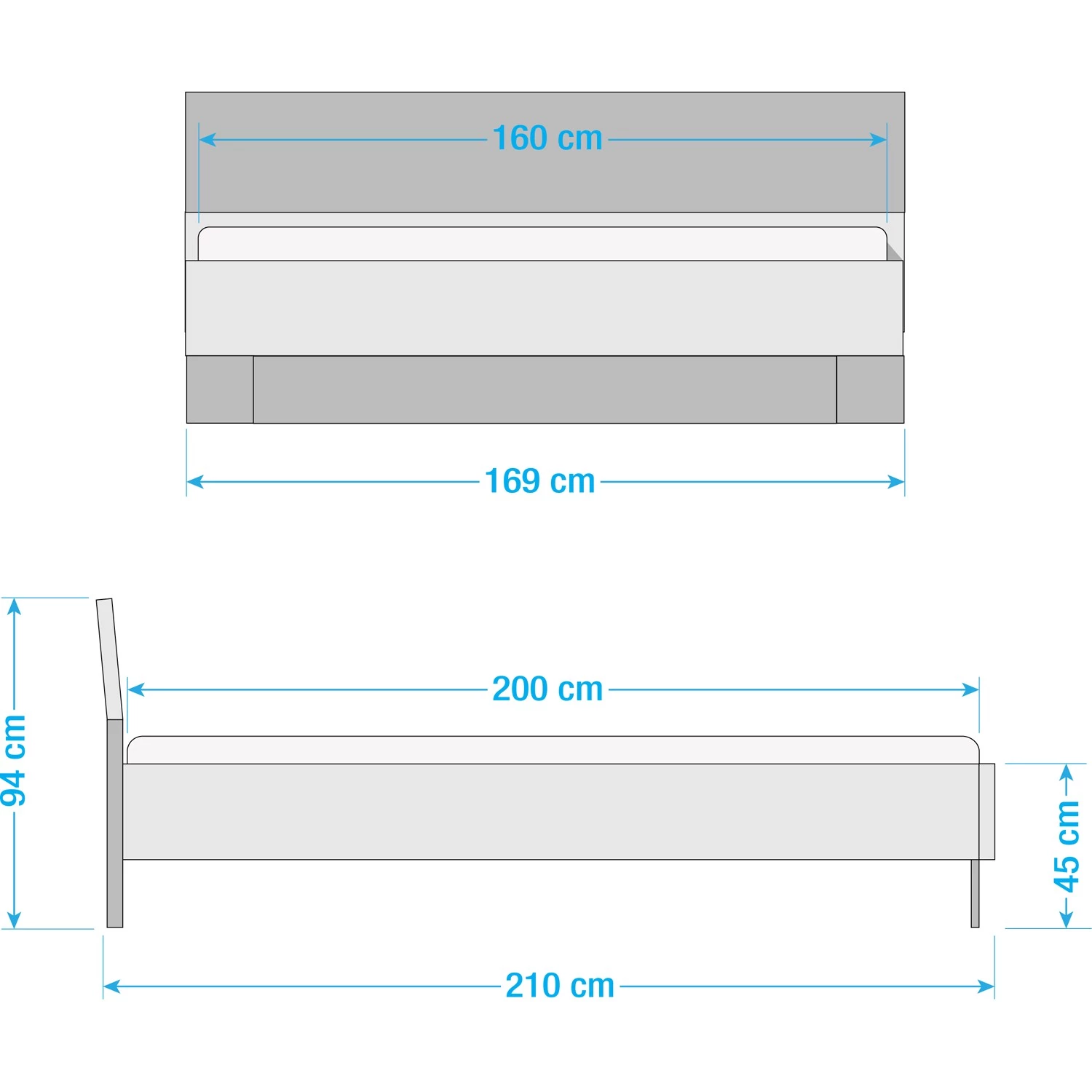 - Hauteur du bord de lit : 45 cm