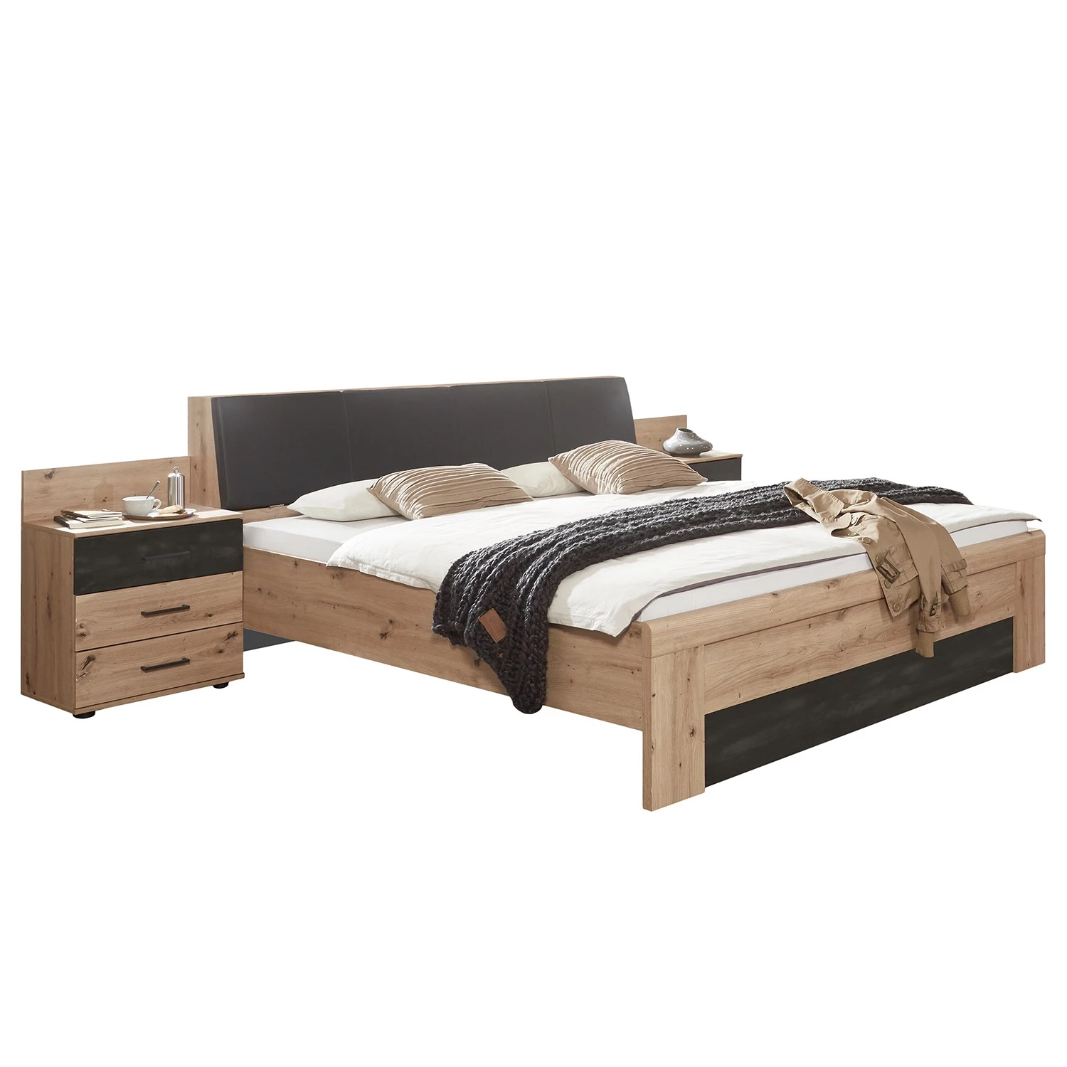- Contenu de la livraison : Cadre de lit avec tête de lit et 2 tiroirs de lit, sans sommier à lattes, matelas ni accessoires