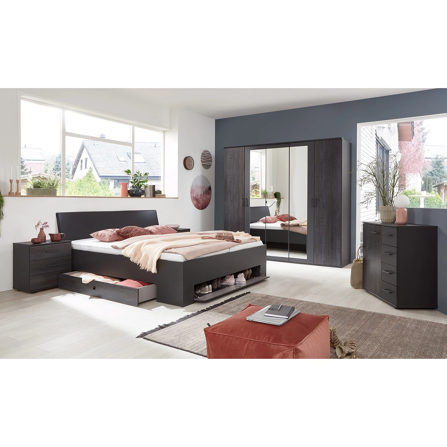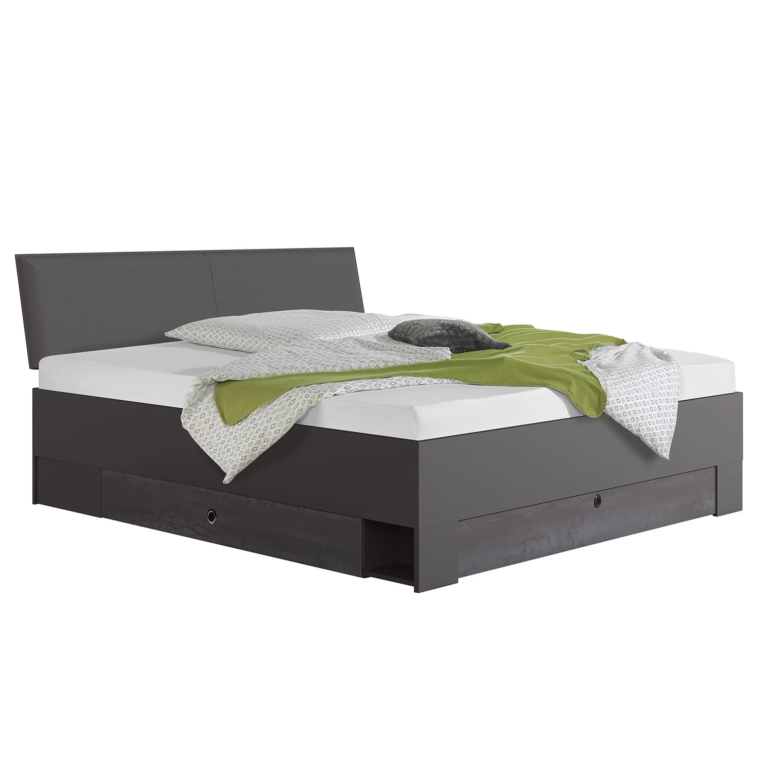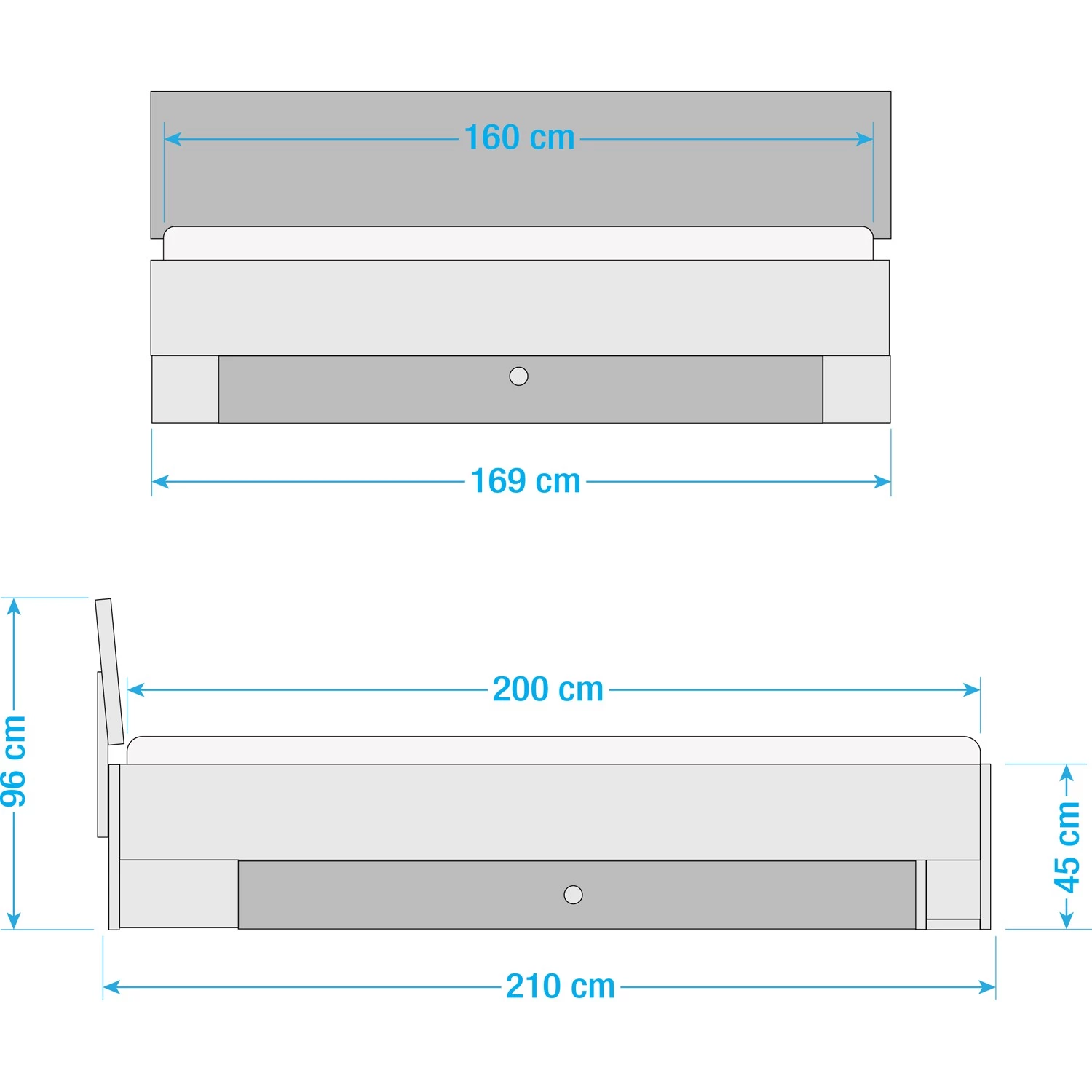 - Contenu de la livraison : Lit incluant une tête de lit capitonnée, 2 tiroirs et 1 compartiment avec abattant